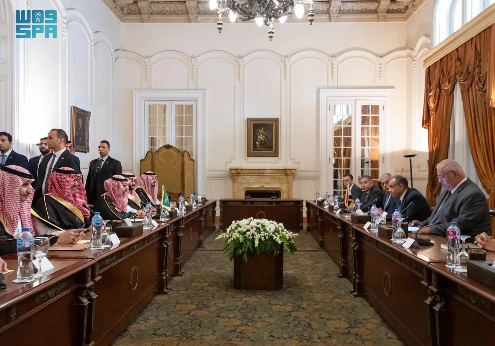 حضر جلسة المباحثات، سفير خادم الحرمين الشريفين لدى جمهورية مصر العربية صالح الحصيني، ومستشار سمو وزير الخارجية محمد اليحيى.