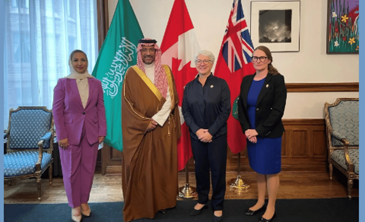 بحث وزير الصناعة والثروة المعدنية بندر بن إبراهيم الخريّف، مع نائب حاكم مقاطعة أونتاريو الكندية، تعزيز التعاون الاقتصادي، وتطوير الشراكة في قطاعي الصناعة والتعدين، وذلك في إطار زيارته الرسمية إلى دولة كندا.