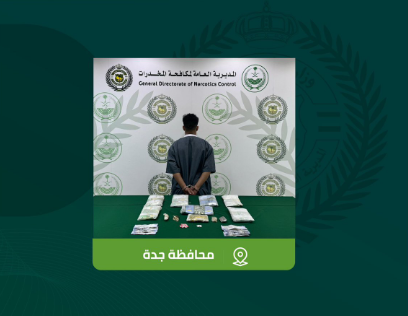 قبضت المديرية العامة لمكافحة المخدرات على مواطن بمحافظة جدة لترويجه (8) كيلوجرامات من مادة الحشيش المخدر وأقراصًا خاضعة لتنظيم التداول الطبي، وجرى إيقافه واتخاذ الإجراءات النظامية بحقه، وإحالته إلى النيابة العامة.