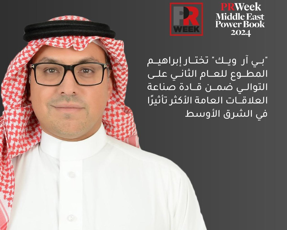 اختارت مجلة “بي آر ويك” العالمية المتخصصة في مجال العلاقات العامة والاتصال، إبراهيم المطوع، الرئيس والشريك المؤسس لشركة جمار للعلاقات العامة، ضمن قائمة قادة قطاع العلاقات العامة والاتصال الأكثر تأثيرًا في منطقة الشرق الأوسط لعام 2024، وذلك للعام الثاني على التوالي.