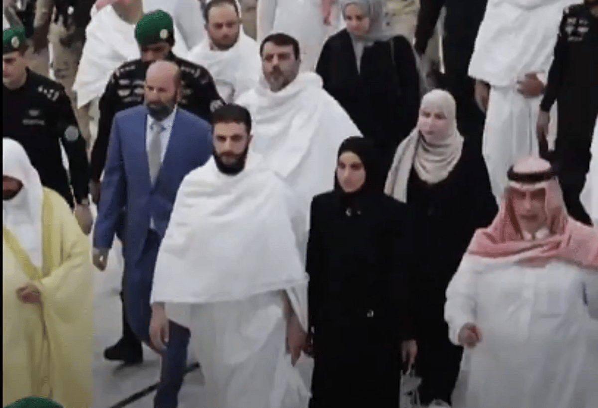 وظهر في الفيديو “سيدة محجبة” ترافق الشرع خلال أدائه مناسك العمرة، جنبا إلى جنب في الحرم المكي، ما أثار التساؤلات عبر مواقع التواصل الاجتماعي.