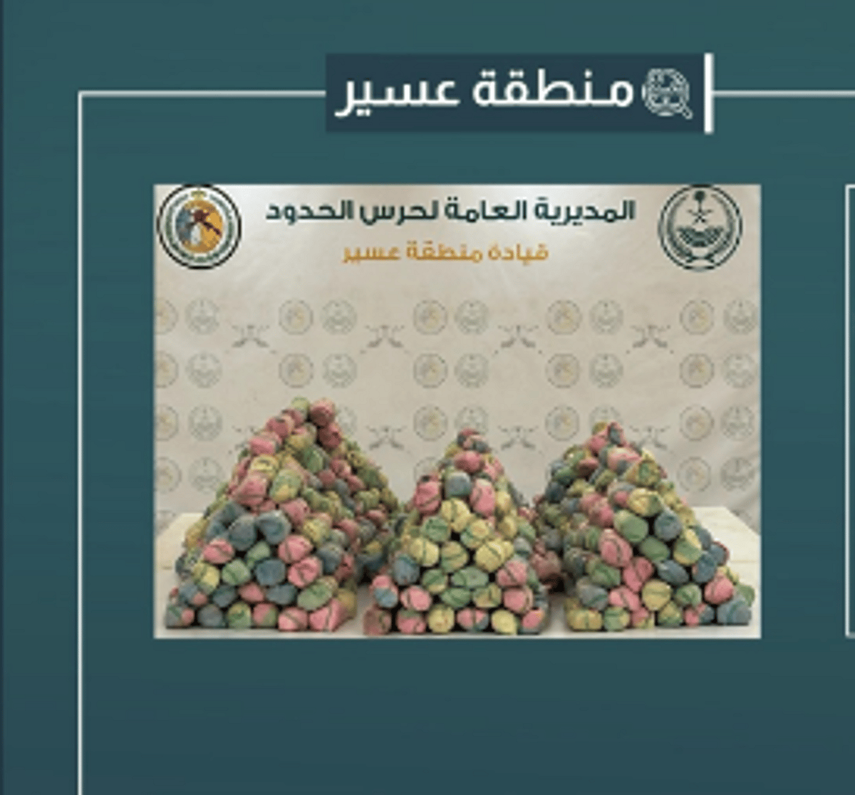 أعلنت الدوريات البرية لحرس الحدود في قطاع الربوعة بمنطقة عسير تهريب (360) كيلوجرامًا من نبات القات المخدر.