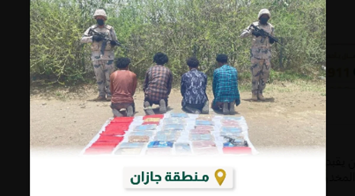 قبضت الدوريات البرية لحرس الحدود في قطاع العارضة بمنطقة جازان، على (4) مخالفين لنظام أمن الحدود من الجنسية الإثيوبية، لتهريبهم (178.7) كيلوجرامًا من مادة الحشيش المخدر، وجرى استكمال الإجراءات النظامية الأولية بحقهم، وتسليمهم والمضبوطات لجهة الاختصاص.