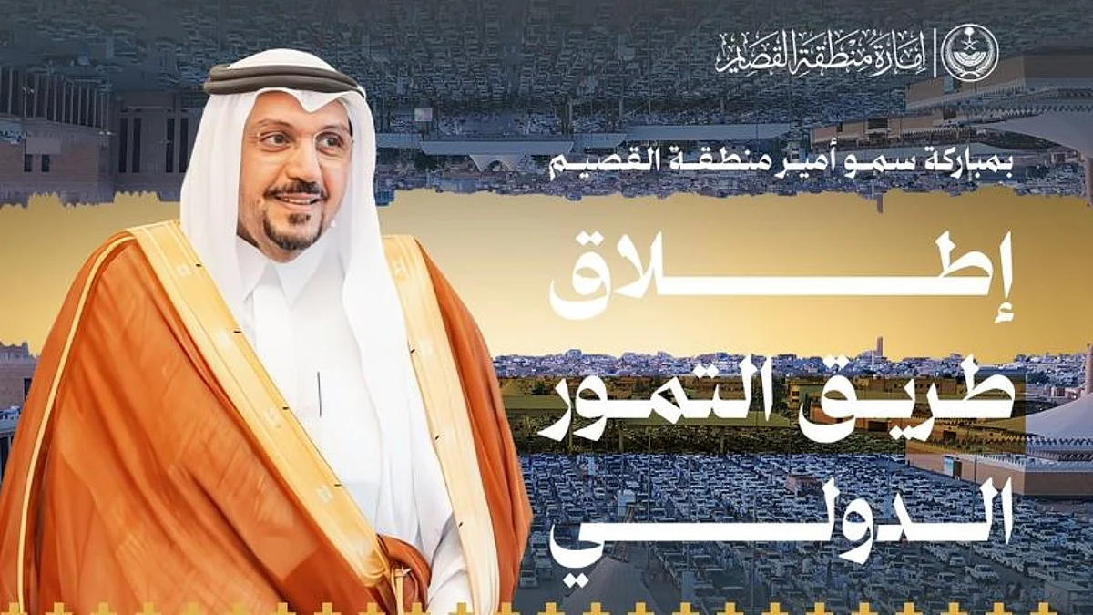 أكد الأمير الدكتور فيصل بن مشعل بن سعود بن عبدالعزيز، أمير منطقة القصيم، رئيس اللجنة العليا لكرنفال بريدة للتمور، أن إطلاق طريق التمور الدولي من قلب الكرنفال، يعد خطوة استراتيجية ترسّخ مكانة التمور في المملكة على الساحة العالمية، وتجسّد حرص القيادة الرشيدة على دعم القطاع الزراعي، وتعزيز الصادرات الوطنية.