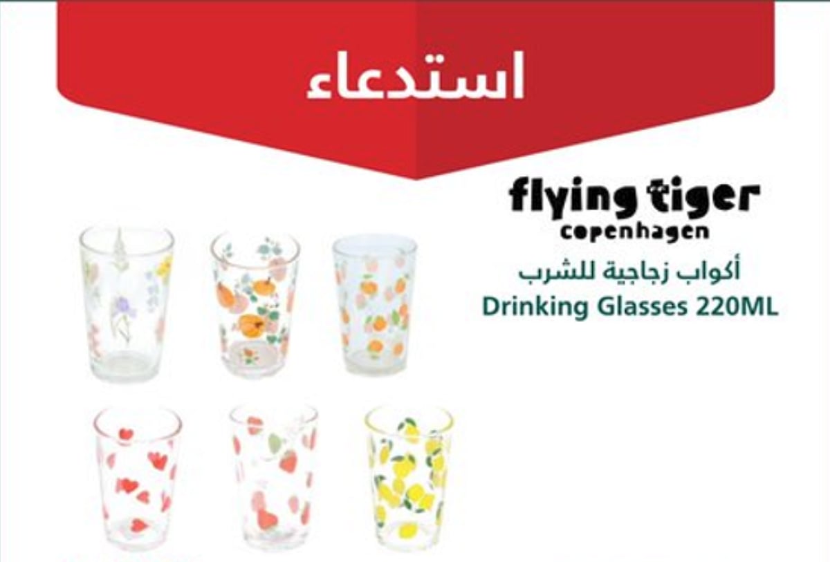 أعلنت وزارة التجارة السعودية عن استدعاء 6,341 كوبًا زجاجيًا للشرب سعة 220 مل من علامة Flying Tiger، وذلك ضمن منتجات تم تداولها خلال عامي 2024 و2025، في إطار جهودها المستمرة لحماية المستهلكين وضمان سلامة المنتجات في الأسواق.