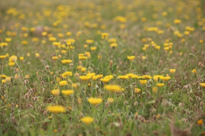 اكتست مساحاتها بغطاء نباتي كثيف وأزهار برية صفراء
